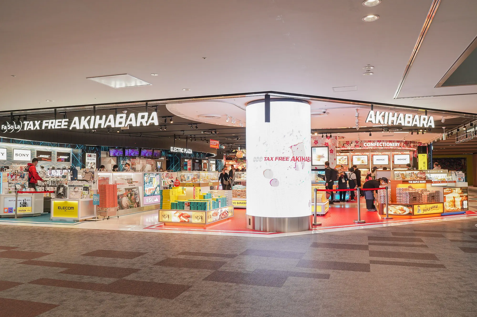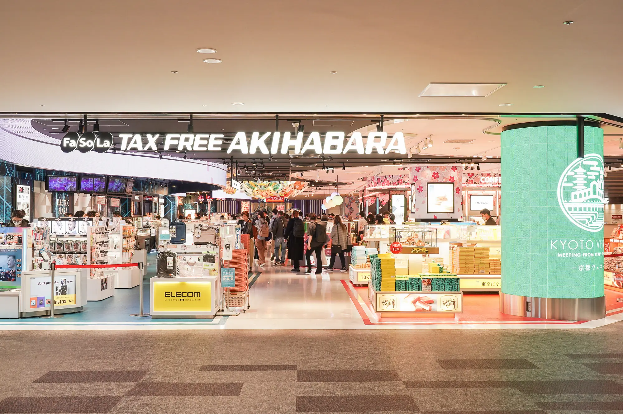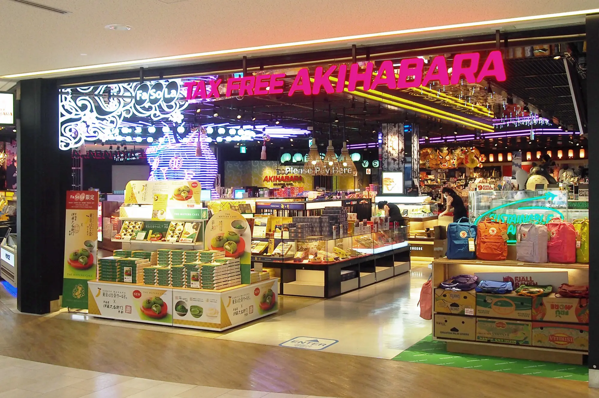 "Fa-So-La AKIHABARA" is the largest store at Narita Airport and offers a rich line-up of "Made in Japan" and "Japanese goods and foods" recommended as gifts for overseas customers in a lively and entertaining space.