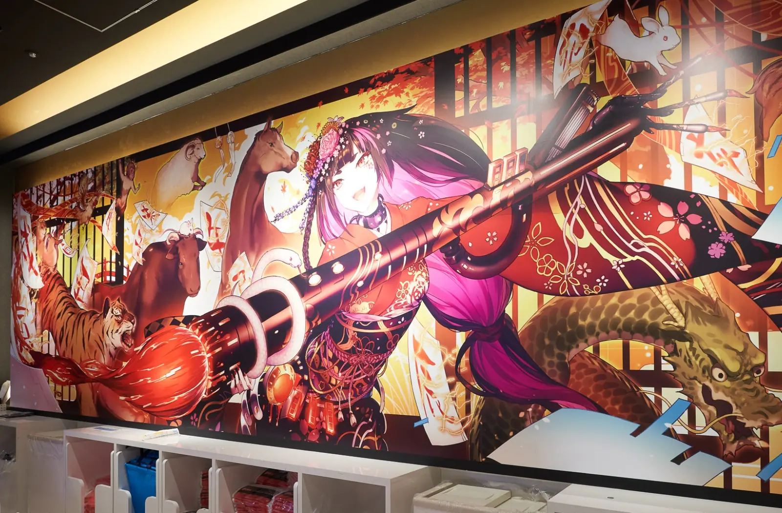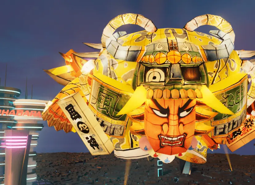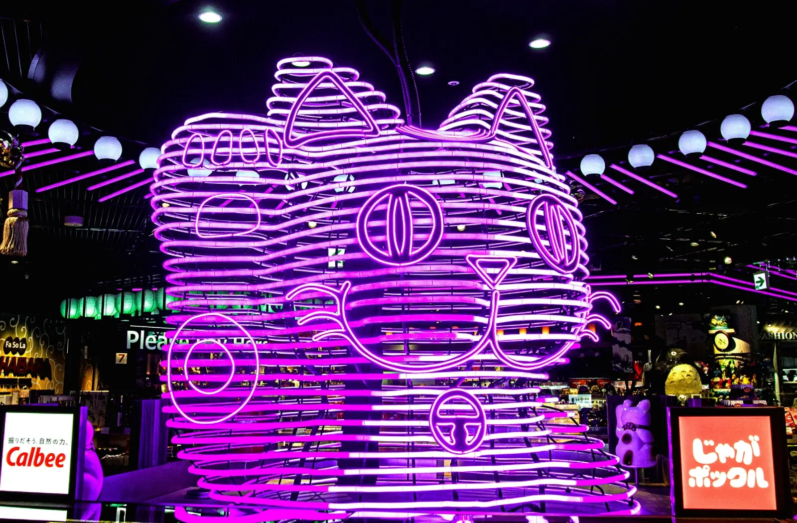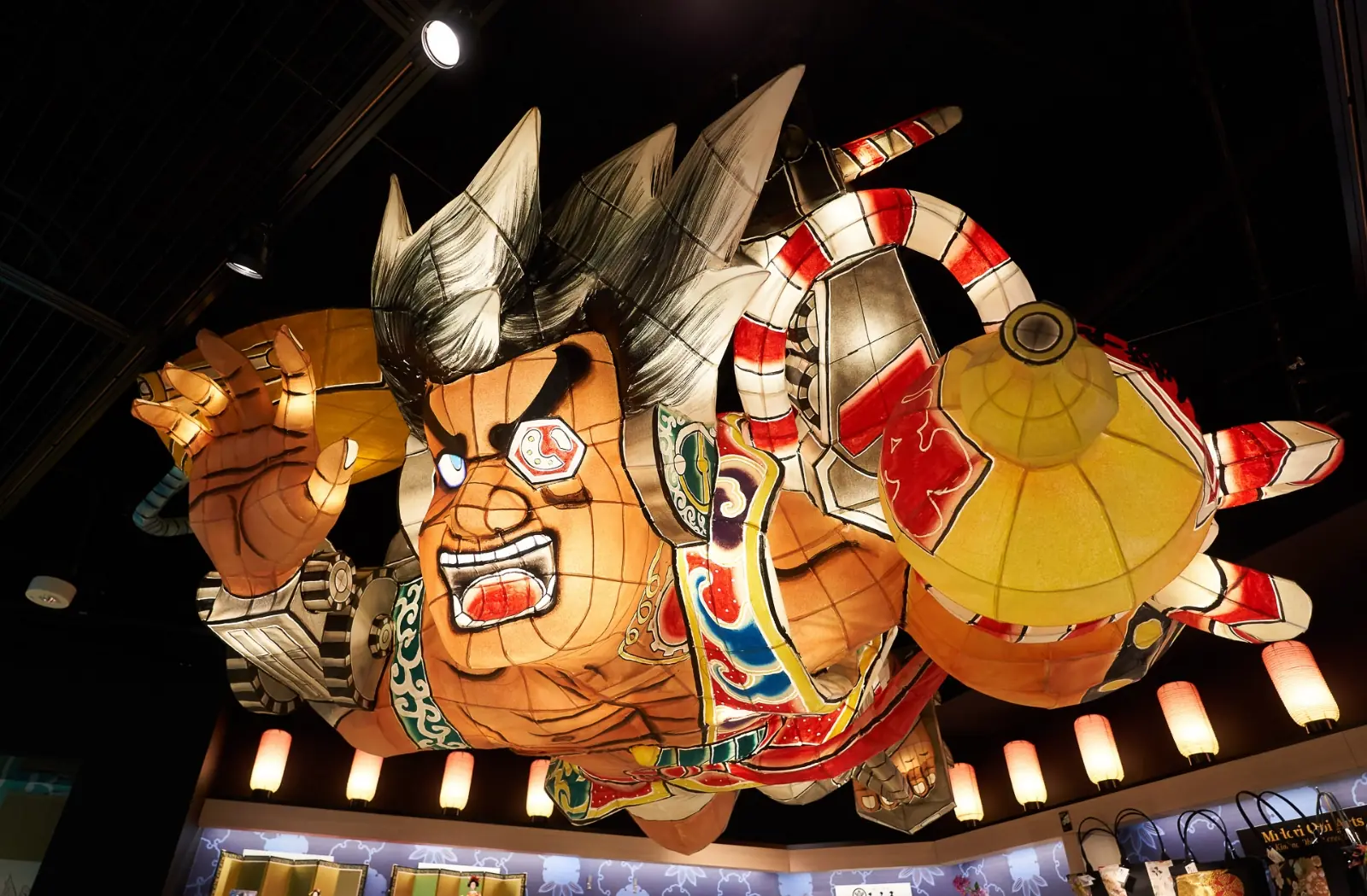 The store features "Nebuta made by famous artist", "Fa-So-La original animated characters", "Neon lights and digital effects" and other elements to entertain visitors as they depart from Narita Airport.