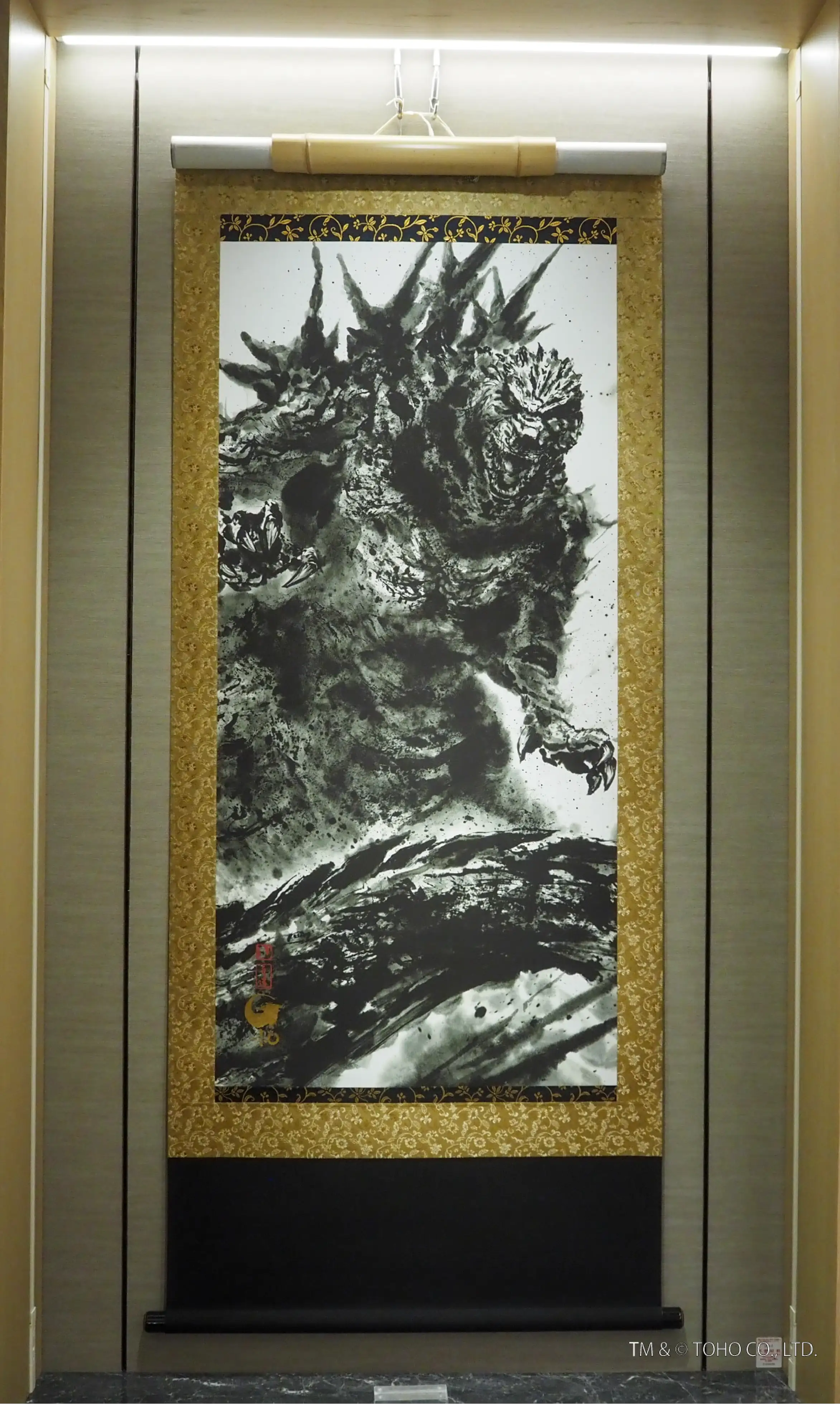 Last but not least, let’s check out the art and anime section. This section is all about Japanese art and anime, which are key elements of Japanese pop culture famous around the world. One particularly striking piece is a hanging scroll of Godzilla—a beloved national icon representing Japanese cinema—painted by ink wash artist Hakudou! It is truly amazing how Godzilla is portrayed with such overwhelming presence using only varying shades of black and white.
