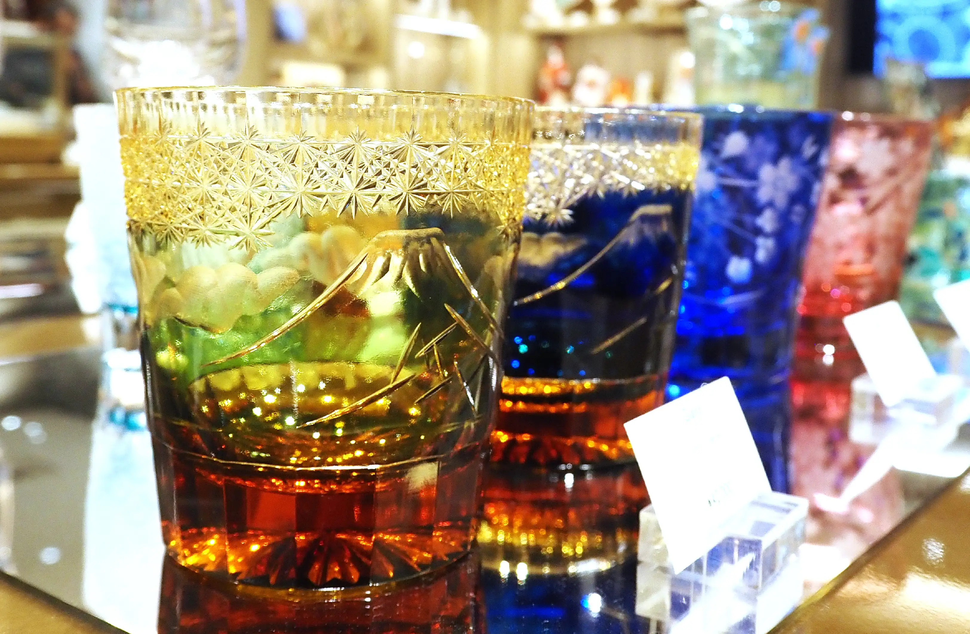 Another thing that caught our eyes was Edo kiriko crystal rocks glasses. These beautiful glasses, adorned with kiriko patterns etched by skilled artisans and immaculately portraying iconic Japanese paintings, are truly mesmerizing. ★Click here for more details about Edo kiriko