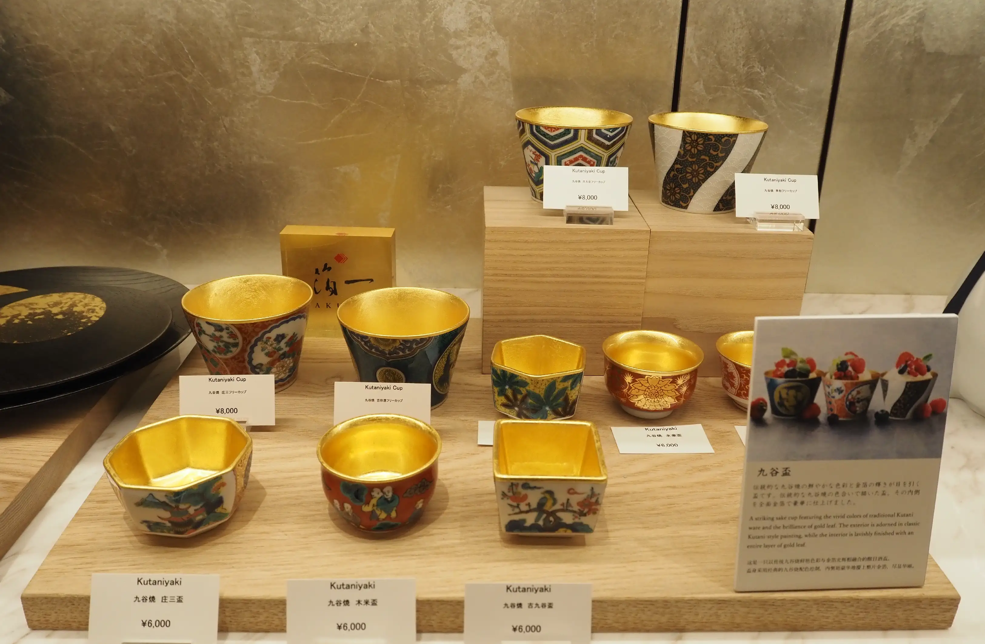 They also carry a variety of cups, such as ones created through the fusion of two different Kaga artisanal techniques—Kanazawa gold leaf and Kutani ware. They are guaranteed to add charm and elegance to celebratory occasions. Fill them with Japanese sake, enjoy the golden shimmer on the liquid’s surface, and indulge yourself in a moment of luxury. ★Click here for more details about Hakuichi