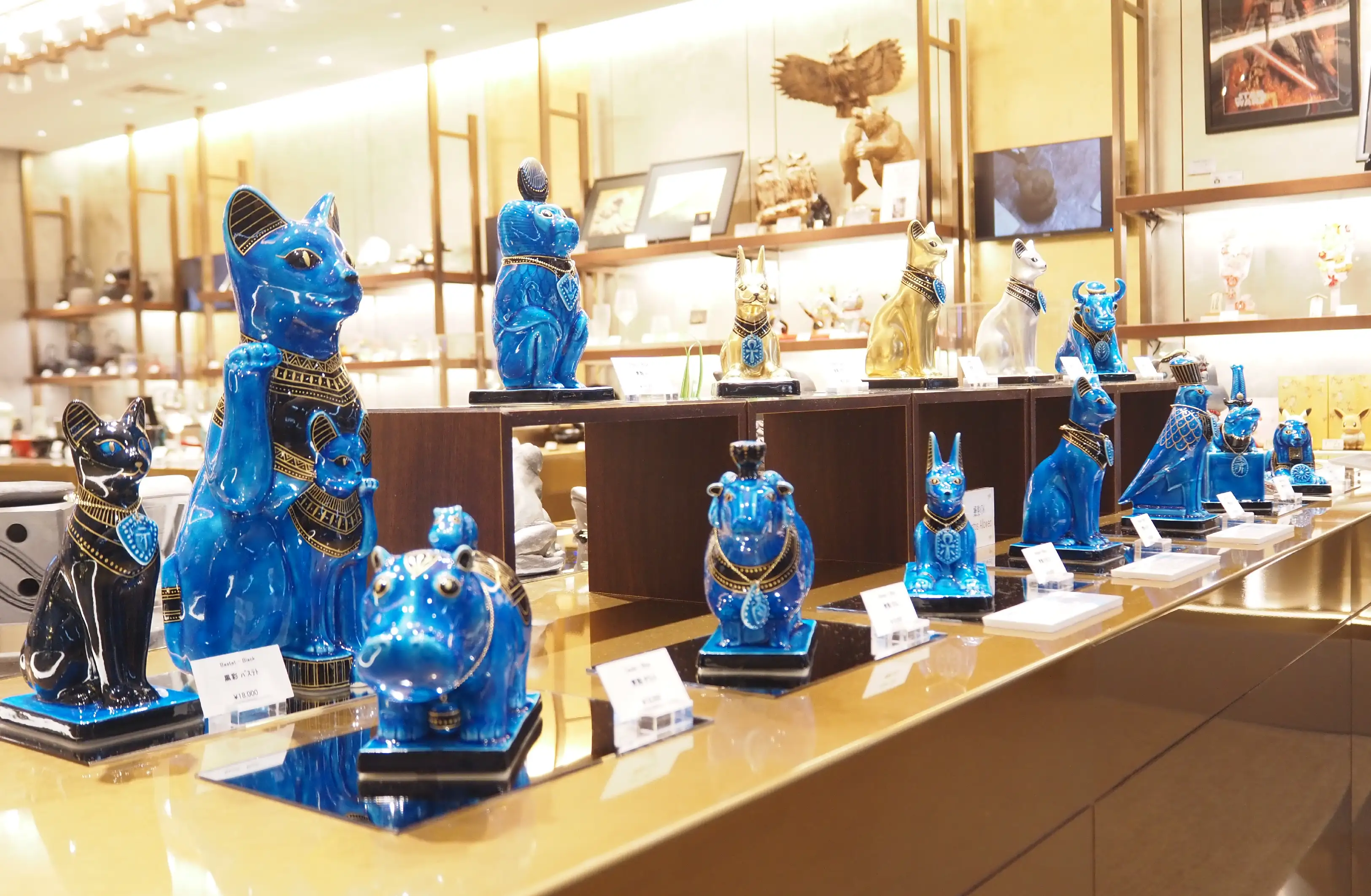 The first thing that caught our eyes were blue glaze ornaments in beautiful shades of Persian blue made by pottery studio Koubeigama. We were left speechless, captivated by the deep blue shades created through Japan’s blue and white ceramics technique. This section at the front of the shop is for special events, so the items on these shelves change from time to time. ★Click here for more details about Koubeigama