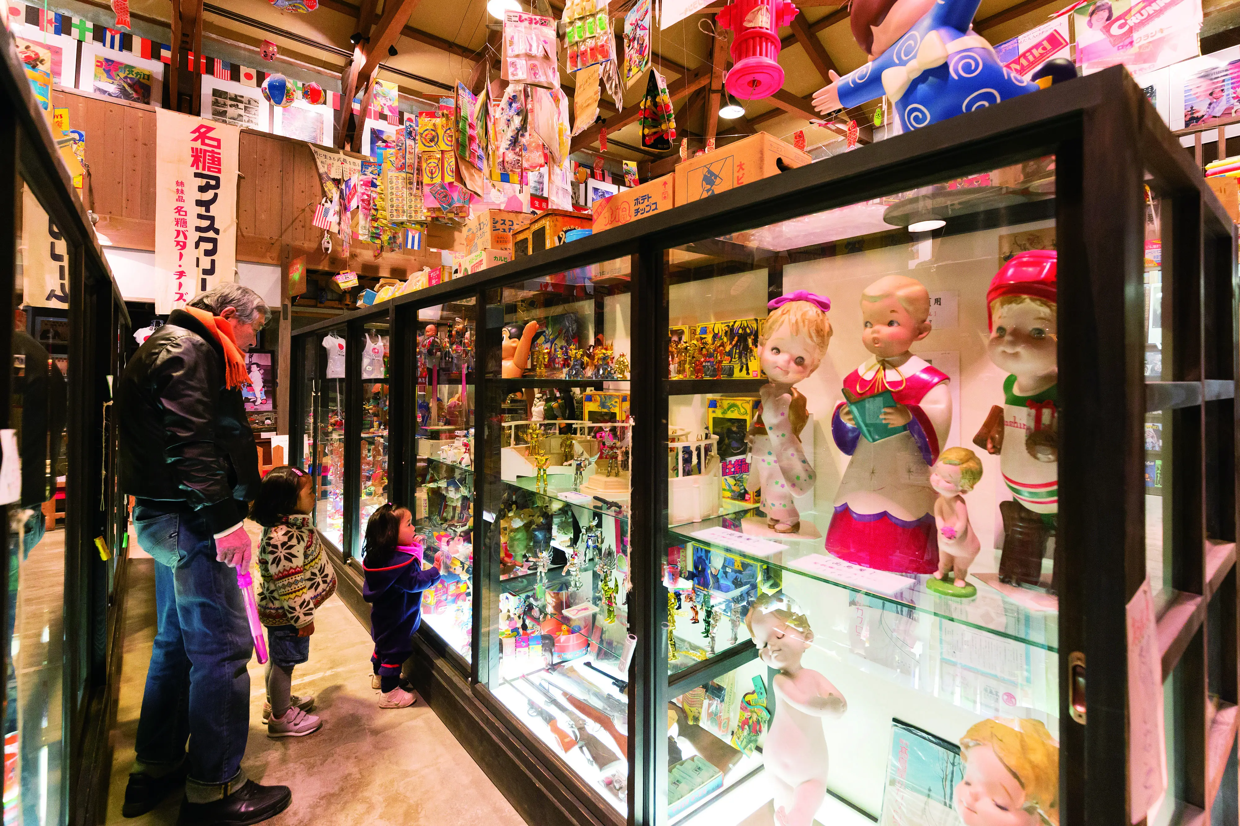 “Dagashiya-no-Yume Museum” in Showa Roman Gura. Over 60,000 items, including penny candies, toys, and posters, are displayed.