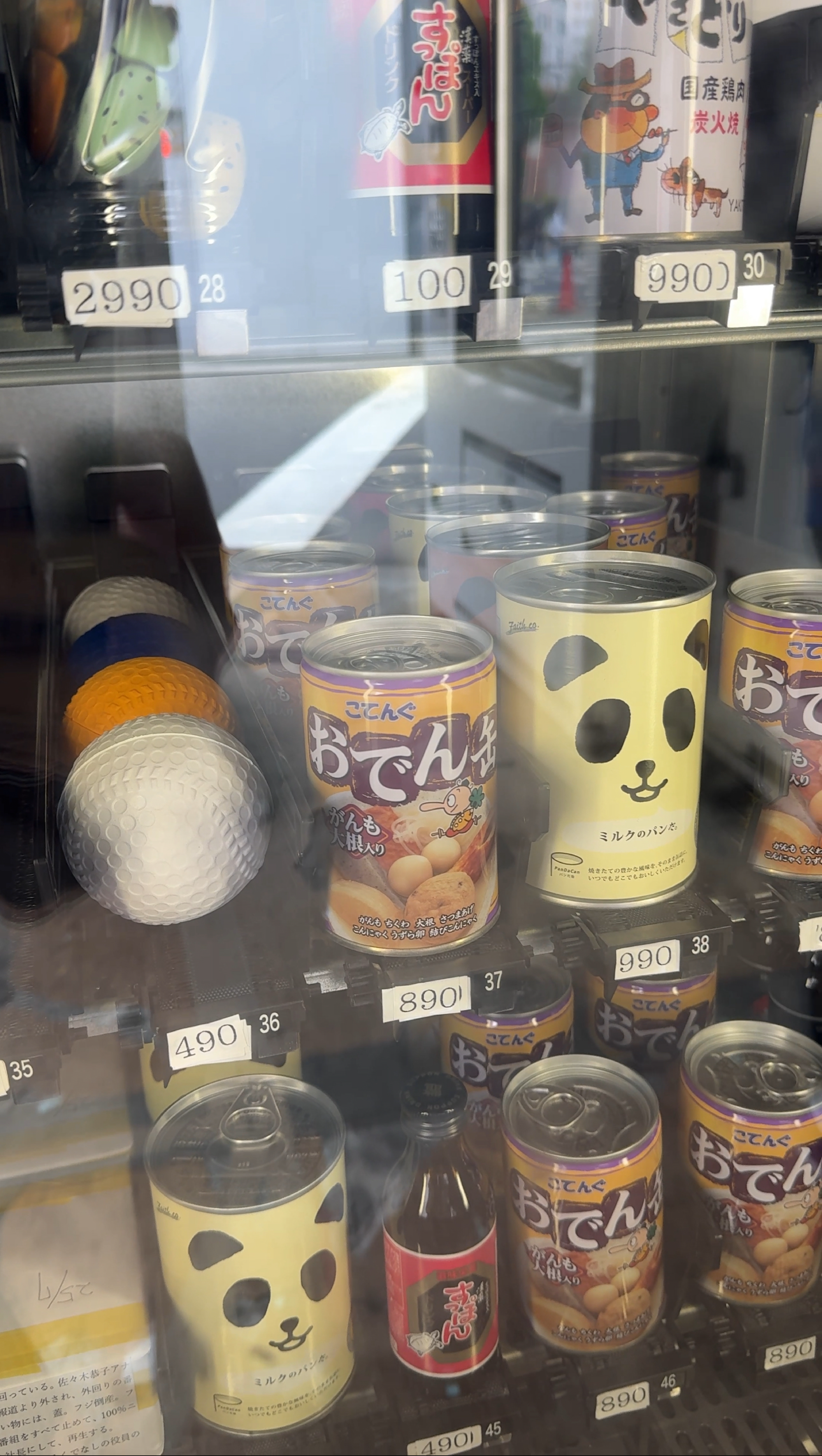Finally, we would like to introduce the vending machine that sells the famous “oden cans” that we highly recommend that you buy when you visit Akihabara (“oden” is a type of Japanese simmered dish). Ever since they exploded in popularity after they appeared in a Japanese drama series that was set in Akihabara about 20 years ago, oden cans have been one of Akihabara’s famous foods. Each can contain a variety of ingredients such as daikon radish, boiled egg, konjac, and fried fishcake, simmered in savory broth with a gentle flavor.