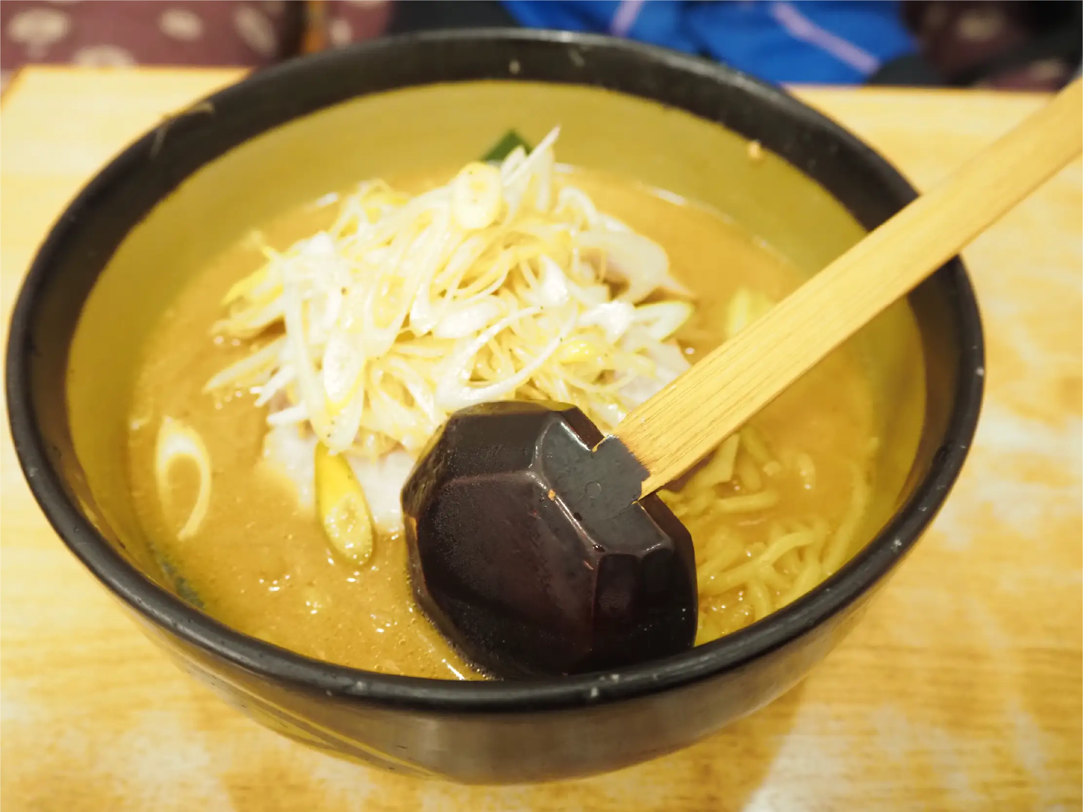 Negi Miso Char Siu is topped with a crazy amount of green onions! What makes it even better is that there is a lot of other veggies such as cabbage and bean sprouts hiding under the green onions. The soup tastes like that of good old fashioned miso ramen, and it goes very well with the crispy vegetables. The noodles are medium thick and on the softer side. While it has a mild taste overall that anyone would love, the salty and chunky char siu gives it a nice accent.