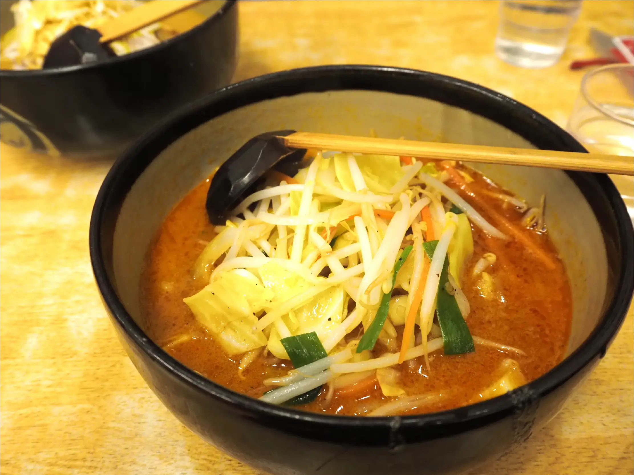 Sichuan Ramen, as its name suggests, has bright red broth that looks very spicy, and is topped with a generous amount of stir-fried vegetables. Despite its spicy look, it has a surprisingly mild taste. The slight sweetness and the sesame flavor, which are nicely blended in the spicy broth, makes it easy to eat, and it tastes amazing with the generous amount of vegetables it has. Both ramens are super tasty and highly recommended.