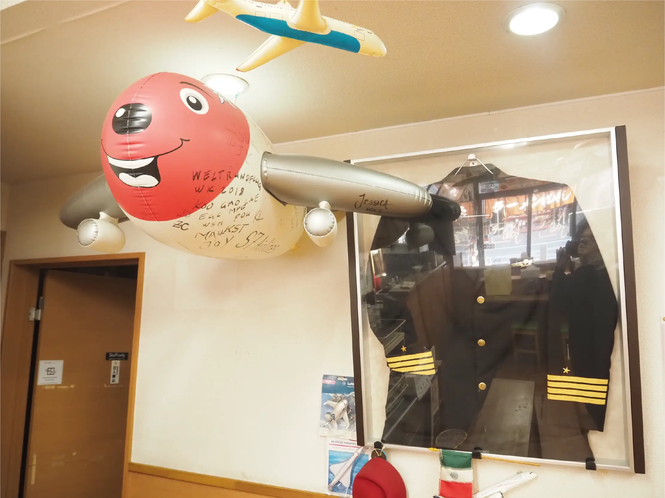 The first thing that caught my eye was a plethora of airline-related items. Because this shop is loved by people in the airline industry, so many items including pilot hats and jackets, airplane models, and airline stickers are displayed in the showcases and on the walls, so you can enjoy the unique atmosphere of a shop in an airport town even before sitting at a table.