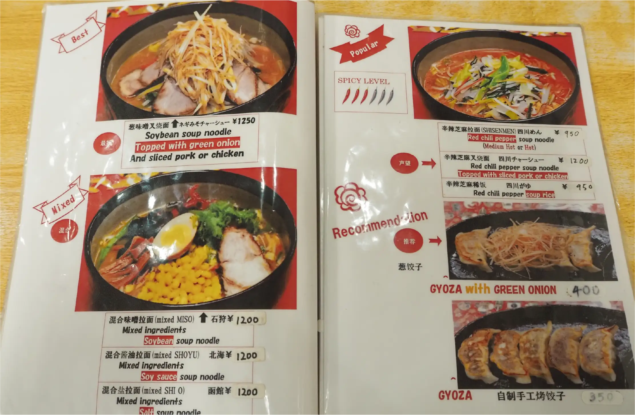 After walking around for a while, looking at the airline items (because it was so fun), we finally opened the menu to place my order. This shop is obviously popular among foreigners because the menu is written not only in Japanese, but also in English and Chinese, and the use of words like “Best” and “Popular” is simple and easy to understand. The shop is also religion-friendly, as you can change char siu pork to chicken for some dishes.