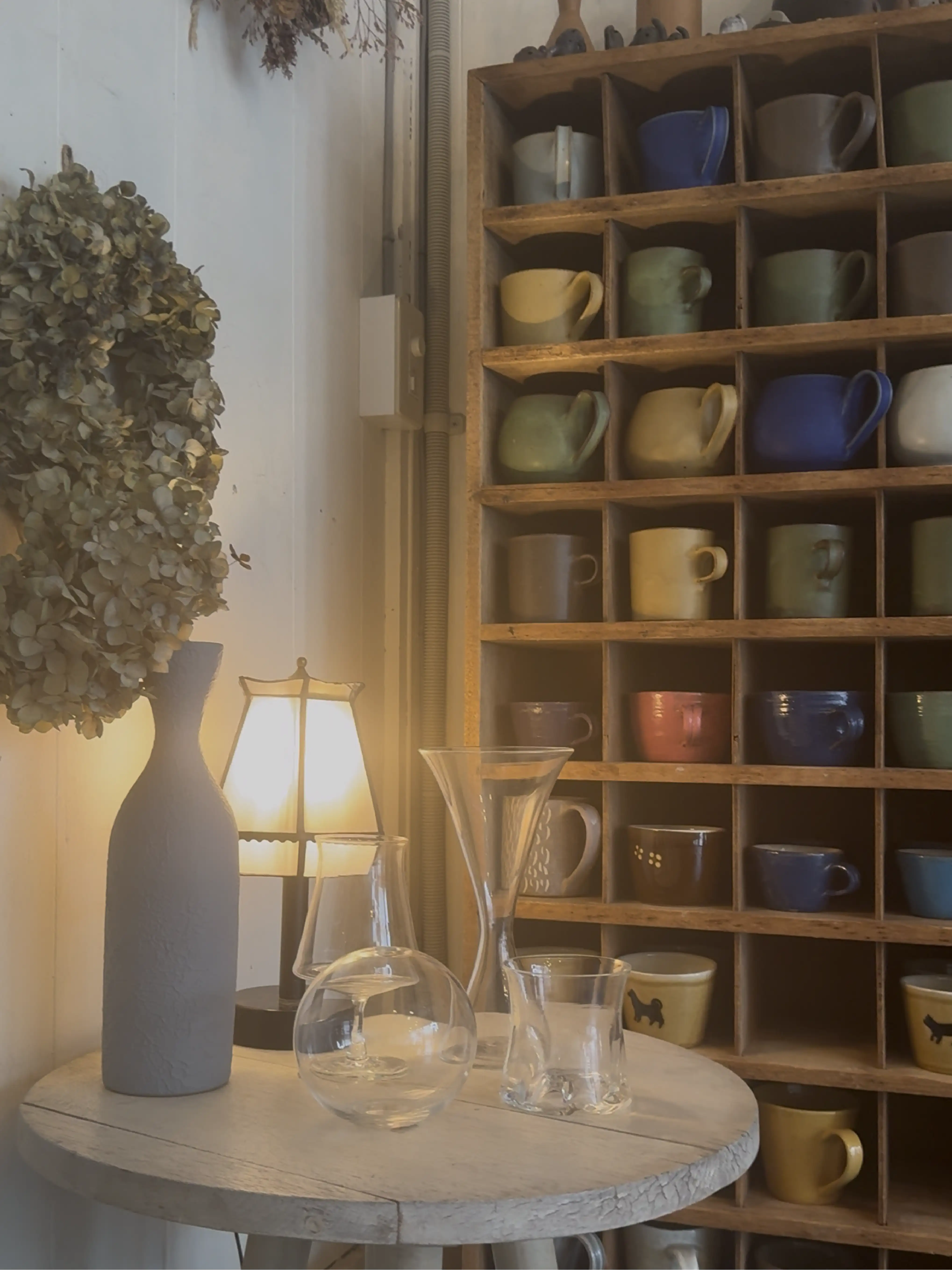 The first floor is a specialty shop offering household items such as dishes. When you go up the stairs in the back, you will see the signboard of Kissa Nikai.